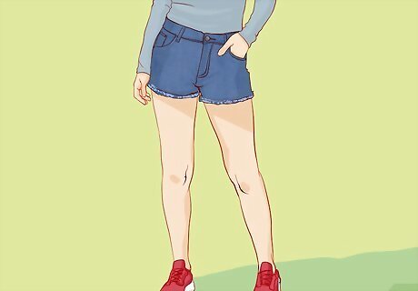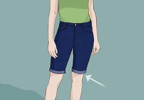 Make sure your knee-length shorts fit loosely around your knees. Knee-length denim shorts are a great way to create a casual and beachy look. If you are choosing shorts that are knee-length, find ones that hit right above your kneecaps and leave some wiggle room in the legs. If your jean shorts are skin-tight and don’t leave room for your legs to breathe, they are probably too small. Knee-length jean shorts are very casual, and cannot be worn to formal events.