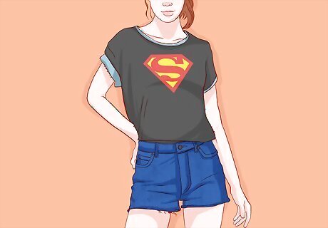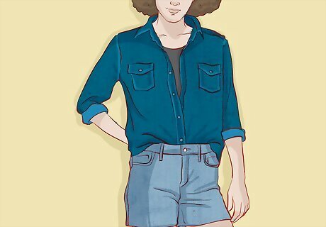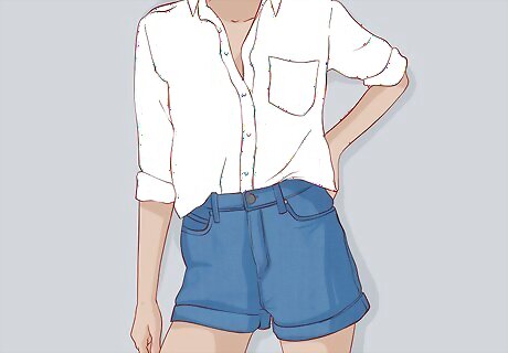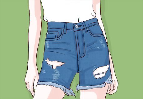 Wear distressed jean shorts for a casual look. Frayed edges and small holes are a great way to keep jean shorts casual. If you’ll be wearing your jean shorts to a party or a friendly get-together, keep your outfit laid-back with distressed, light wash denim shorts. You can make your own distressed jean shorts out of jeans by cutting off the legs and poking holes in your shorts with scissors.
