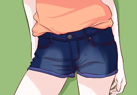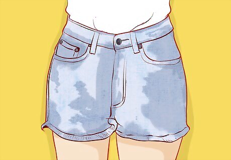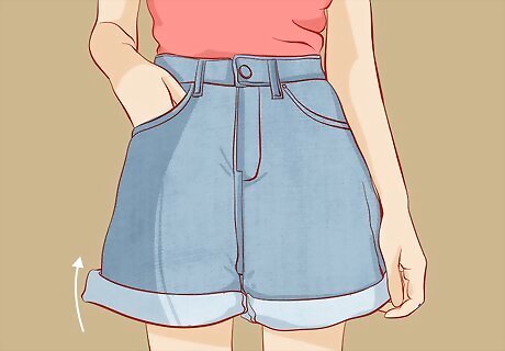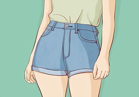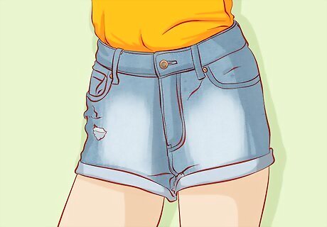Choose high-waisted shorts for a modern outfit. High-waisted shorts are all the rage. Choose jean shorts that sit just above your hips near your belly button for a flattering, stomach flattening pair of shorts. Pick out shorts that hug your waist but aren’t too tight around your back or legs.Tip: Measure your waist by wrapping a tape measure around your midsection just below your ribs. This will help you as you look at sizes.