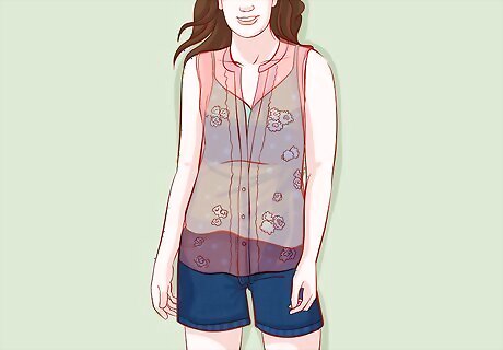 Stand out with a floral button-down over a tank top. If you want to create a laid-back island feel, use a floral or Hawaiin shirt that isn’t buttoned up and layer it over a plain tank top. Make sure the button-down hits right at your waist so it doesn’t overwhelm you. Pair this with some light-wash jeans.