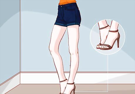 Enhance your summer look by adding strappy sandals. Most often, you wear jean shorts when it is hot out. To keep your feet from sweating, throw on some strappy sandals with your jean shorts. Choose sandals that accentuate the rest of your outfit, or even ones that match the top you are wearing.Tip: Black sandals are classic and go with almost anything. Choose strappy sandals with jewels on them for more formal attire, or go with plain ones for a casual outfit.