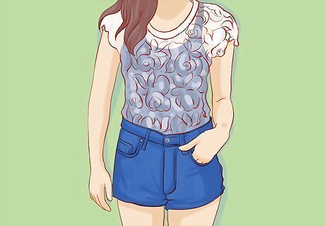 Pair jean shorts with a lace top for a feminine outfit. Jean shorts can sometimes look a little harsh or masculine. Pair them with a soft lacy top to accentuate your femininity. Put a bralette under a sheer lace top on a hot day to stay cool while looking great. White lace looks classic, while colored lace can make your outfit stand out.