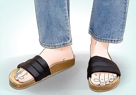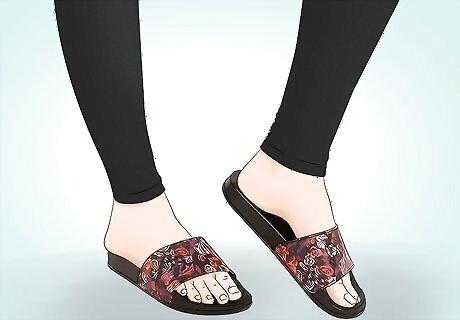 Groom your feet before you wear slides. Wearing slides means you will be exposing your toes and feet. Before sliding into these sandals, make sure your toenails are trimmed and clean. You should also treat any toenail fungus or athlete’s foot before baring your toes in slides. Consider getting a pedicure before you wear slides. Try exfoliating your feet and painting your toenails at home if you’re not into professional pedicures.