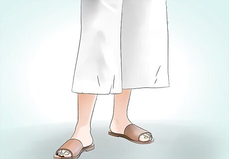 Create a laid-back outfit by pairing linen pants with a nice pair of slides. Pairing slides with casual linen can update your summer look. The combination will keep you comfortable and cool in a variety of settings, taking your outfit from afternoon to evening with ease. Try pairing green linen pants with a woven, brown leather slide. You can even pair neutral or bold colored slides with a navy linen suit, creating a casual, yet elegant outfit.
