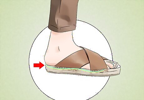 Wear crossed leather slides with khakis for a classic look. Try out a pair of leather slides with a leather cross band upper. These slides can be a summertime classic when paired with a pair of khaki shorts or linen pants. While perfect for a poolside afternoon or backyard barbeque, crossed leather slides are also dressy enough to make their way to an elegant seaside dinner. Try wearing crossed leather slides with dressy shorts and a polo shirt for a simple, casual look. Go for a pair in brown leather, as the color adds a touch of formality to the sandal.
