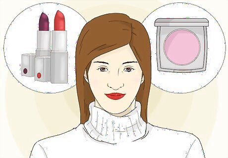 Consider your makeup colors. Since winter whites can be dramatic on their own, try to keep your makeup simple. Try using neutral blushes and eye shadows, but go for a classic red or burgundy lipstick. Tailor your makeup to your day, so your daytime makeup is more casual than an exciting look you might wear in the evening. You can wear a pinkish blush so that it looks like your cheeks are flushed from being out in the cold. The blush will really stand out with your winter white outfit.