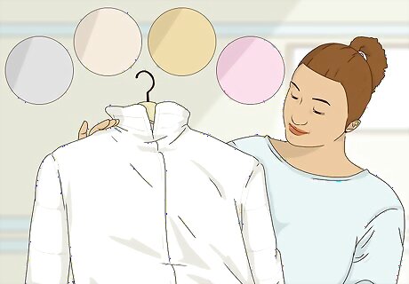 Look for different shades of white and cream. Avoid simply choosing items that are pure white. Wearing pure white is difficult because it will make you look one-dimensional. Instead, choose clothes that are varying shades of white and even cream. Cream can soften a look and add interest. You can also look for clothing items in these colors: Gray Camel Tan Blush Cream Beige