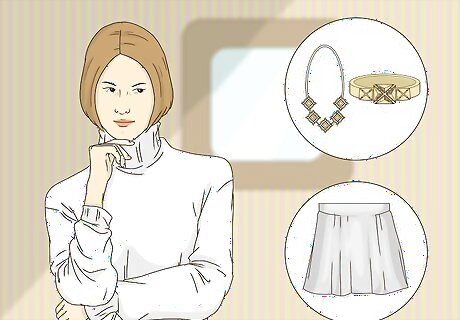 Add a little sparkle. Don't be afraid to introduce a sparkly accessory or clothing item to your look. This is a great way to add dimension to a mainly white outfit. Look for items that are metallic, gold, or silver. Look for fabrics that include a little shimmer or add a shiny accessory. For example, you could wear a metallic skirt along with an oversized cashmere sweater for a look that you can wear out to a fun social event.