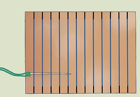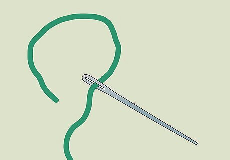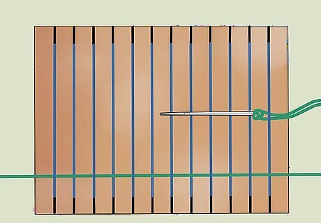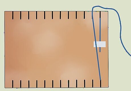 Thread a piece of hemp yarn through a plastic embroidery needle. Cut the piece of yarn so it's 2 feet (0.61 m) long. Shorter pieces of yarn will be easier to work with at first, so you can also cut a smaller piece if you’re a beginner. This yarn will be clearly visible in the final weaving, so select the color carefully. You will be able to switch yarn colors throughout the weaving. You may want to tie the yarn to the needle to keep it from sliding off during the process.