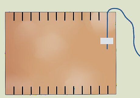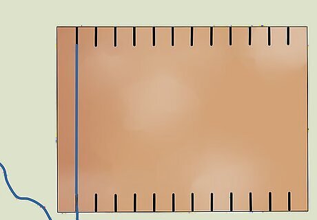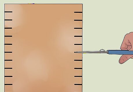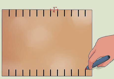 Mark notches every ⁄4 inch (0.64 cm) along the top and bottom. Make the first vertical mark ⁄2 inch (1.3 cm) in from the left edge. Then, using a ruler and a marker, draw a mark every ⁄4 inch (0.64 cm) until you reach the right edge. Repeat this process with the bottom border. Double-check to make sure the bottom marks line up vertically with the top marks as you work. Make sure you mark an even number of notches. If you want to make the weaving easier, you can space the notches further apart. Just make sure they are evenly spaced.