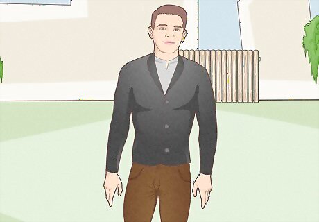 Pick the right clothing. Depending on the setting, wear clothing to blend in. Try to avoid any bright colors or clothing that reflects light. Forest: Wear greens, browns, and greys. Avoid blacks because this will stand out in the forest. Neighbourhood: Wear browns and dark greys. Nighttime: Wear dark greys and blacks. Fields: Wear sandy colored clothing, greens, and browns.