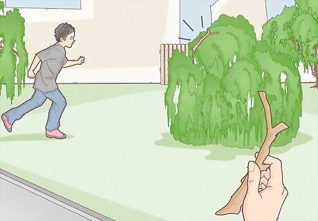 Create water-based "weapons". Try bringing a water bottle with a poked hole at the top. When the hunter finds you, get your bottle and launch! This gives you time to escape! Or use an old glue bottle and fill it up with water for more accuracy, minus the chance of spilling.