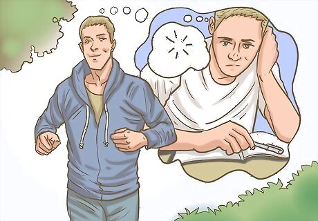 Power through writer’s block. You may feel as though you have hit a dead end, but writer’s block does not mean that you have lost the challenge. Instead, you can work through your problems and return to your writing with new ideas. Some ways you can do this include: Exercise: You can take a walk, do some yoga, or go for a run. The movement will clear your mind and get your brain working. Freewriting: Write whatever comes to mind for fifteen minutes without stopping. It does not have to be about your novel. You can write about your day, your feelings, or your goals for the month. "'Make a playlist.'" If you like to listen to music while you write, you should make a playlist. Listen to the same songs, which will build associations in your mind with writing. After listening to them for a few writing sessions, these connections will inspire you to write. Additionally, you could try using scented candles. Take a break: Do something else for a little while. Make dinner, watch a TV show, or clean your house. When you return to your desk, you may find yourself refreshed and ready.