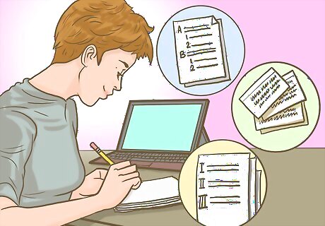 Outline your novel. An outline will help you stay on track during your month of writing. By knowing what happens next in your novel, you may be able to prevent writer’s block. This also takes much of the work out of novel writing, so you can focus on hitting your word count. Some ways to outline include: Skeleton Model: This is a traditional outline. List ten major events in the novel. This should include the introduction, the rising conflict, the climax, the resolution, and the conclusion. Label each with a roman numeral. Below each section, in bullet points, list the major events or the most important details of each section. Notecards: Write down your major events, plot points, or details on notecards. Lay these out on a table, and arrange them in the order that you want. If something seems out of place, you can move it around. Remember to stack the notecards in their proper order so you can pull them out next time. Chapter outline: Write down all of your chapters and their headings. Write a brief summary of what happens in each chapter.