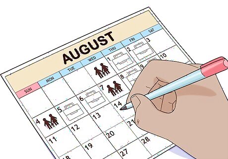 Create a routine that allows you to meet work and personal goals. Make a list of your priorities and of your non-negotiable tasks, like getting the kids off to school in the morning, attending evening classes, and exercising. Plot out your work responsibilities and how you will tackle those items each week. Use a calendar (either on your phone or in a notebook) to block out your schedule. Make your work hours, social commitments, and tasks all different colors in your calendar so you can easily see how your time is being spent.