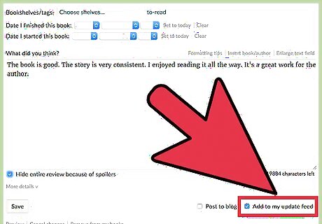 Make sure the button to the left of "Add to my update feed" is checked. Being that Goodreads is a social-bookmarking website, you can show your friends that you've added a review.