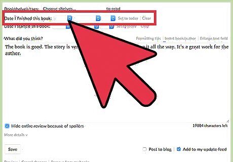Mark the drop-down boxes for "Date I finished this book" with the applicable information. It's best if you have previously finished this book in real-life, rather than saying you have when really haven't, and in grounds for your review getting deleted by Goodreads admins/Goodreads Librarians.