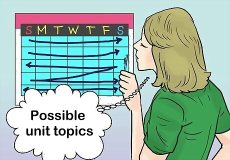 Organize the year into units. A common way to organize a preschool curriculum is by thematic units. Units are larger topics that can be explored for weeks at a time and through many subject areas. Once you have your units, you can begin to add appropriate, standards-based activities. Possible unit topics include animals, community, plants, or family. Units generally last from one to five weeks, depending on the amount of material that needs to be covered.