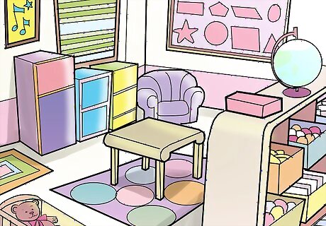 Structure your room appropriately. Depending on the teaching method you are using, your classroom may look different. A student-based classroom will have more sections for student exploration such as a sandbox and a water table. An academic classroom may have a larger full-group area for students to learn from teacher-led activities. You can adjust the structure based on the current unit you are teaching as well. Add play materials, pictures, and informational texts that relate to the learning concept to each part of your classroom.
