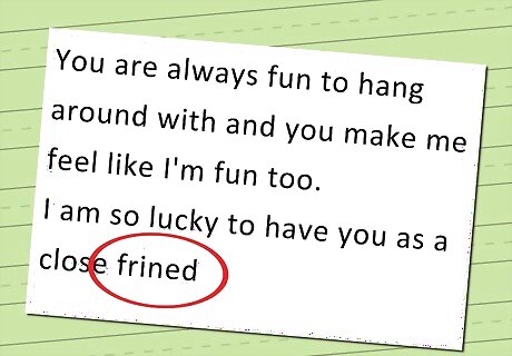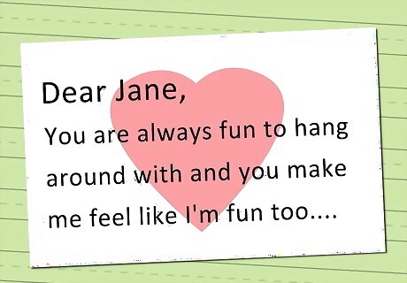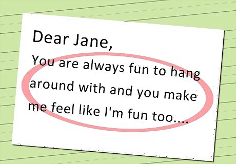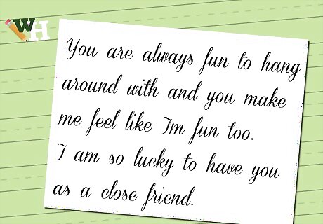Always pinpoint the unique good qualities of the receiver. Instead of something such as "You're so nice!", be genuine. Say things like "You are always fun to hang around with and you make me feel like I'm..."