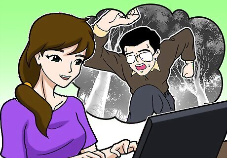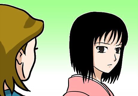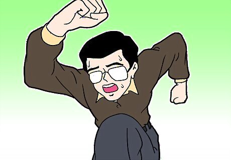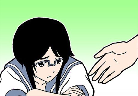 React to other characters' emotions appropriately. If your character happens to stumble upon a girl crying, he may stop to comfort her or look around for her parents. If he isn't good in social situations, he might awkwardly stand there or ignore her. For a character with a nasty personality, he might seize the chance to steal her backpack or laugh at her pain. His actions will depend on his personality, but remember that people can change. For this example, let's take a shy, nervous guy who is socially awkward: Rick couldn't stop staring down at the crying girl. She was tightly curled up into a ball and clinging onto his legs. Quiet sobs exploded from her mouth, and her shoulders were shaking. Rick thought he heard her saying something, but she was pressing her face into his faded jeans. It muffled her words and made it impossible for him to understand her. He wished he was back at home, safely nestled in front of his laptop. Unfortunately for him, he was in an old alley, being hugged by a broken human being.