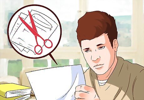Cut anything that's not necessary. As you revise and edit your writing, you'll need to make some tough choices on what stays and what goes. You will likely be very fond of your own writing, so this part of the process can be difficult - which is why it's so important to set aside your writing before you attempt to edit or revise a manuscript you've completed. Use clear, concise language. Cut out any flowery prose that distracts from the rest of your book or essay. No matter how fond you are of the way a sentence sounds, if it is not necessary or relevant, it shouldn't make the final cut.