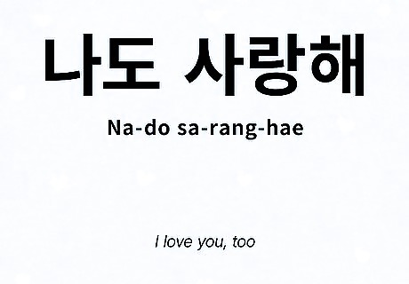 Na-do sa-rang-hae (나도 사랑해): “I love you, too”Let’s say that your partner just said “sa-rang-hae” (I love you) to you. In response, you could say “na-do sa-rang-hae,” or “I love you, too.” Person:1: Sa-rang-hae (사랑해)!Person 2: Na-do sa-rang-hae (나도 사랑해)!