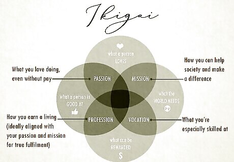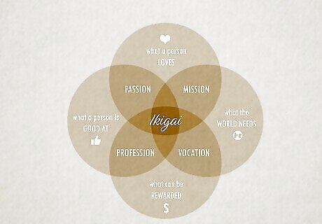 Use the ikigai diagram to identify your passion and life's mission. If ikigai is made up of things that give your life drive, meaning, and purpose, then your job is to figure out what those things are! Do some soul-searching (with the ikigai diagram in mind) and work to understand your passion, mission, vocation, and even ideal profession in life. In theory, this should lead you to a sense of ikigai! Passion can refer to activities that make you feel happy, eager, and enthusiastic. Ask yourself what you most enjoy doing (even when you’re not getting paid for it)—and that’s your passion. Mission is more about what you can do to improve society and make a difference in the world. Ask yourself what issues you feel strongest about solving, and you’ll find your mission. Vocation is all about the things you’re skilled in, perhaps more so than other people. Ask yourself what skills you excel at, and you may find your vocation! Profession is how you make a living, right? So, to bring ikigai to your life, your profession should also incorporate your passions and mission. A profession like that is more likely to bring you a sense of fulfillment!